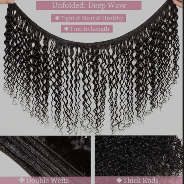 Deep Wave Human Hair Bundles 14 Inch Water Wave Bundles 12A Brazilian 100% Unprocessed Virgin Human Hair Wet and Wavy Bundles Double Weft
